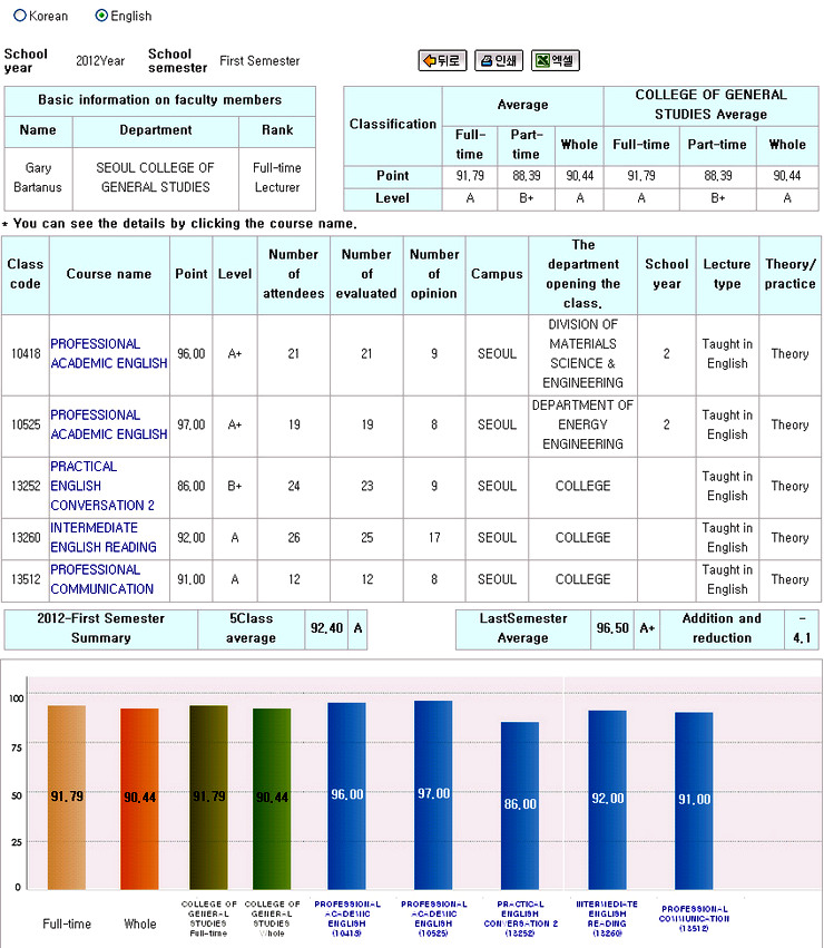 I have taught at Hanyang University for three years and love going to class because the students here are incredibly motivated and energetic! The images on the right provide a quick snapshot of my excellent experience here. A PDF file with more evaluation results is available here.